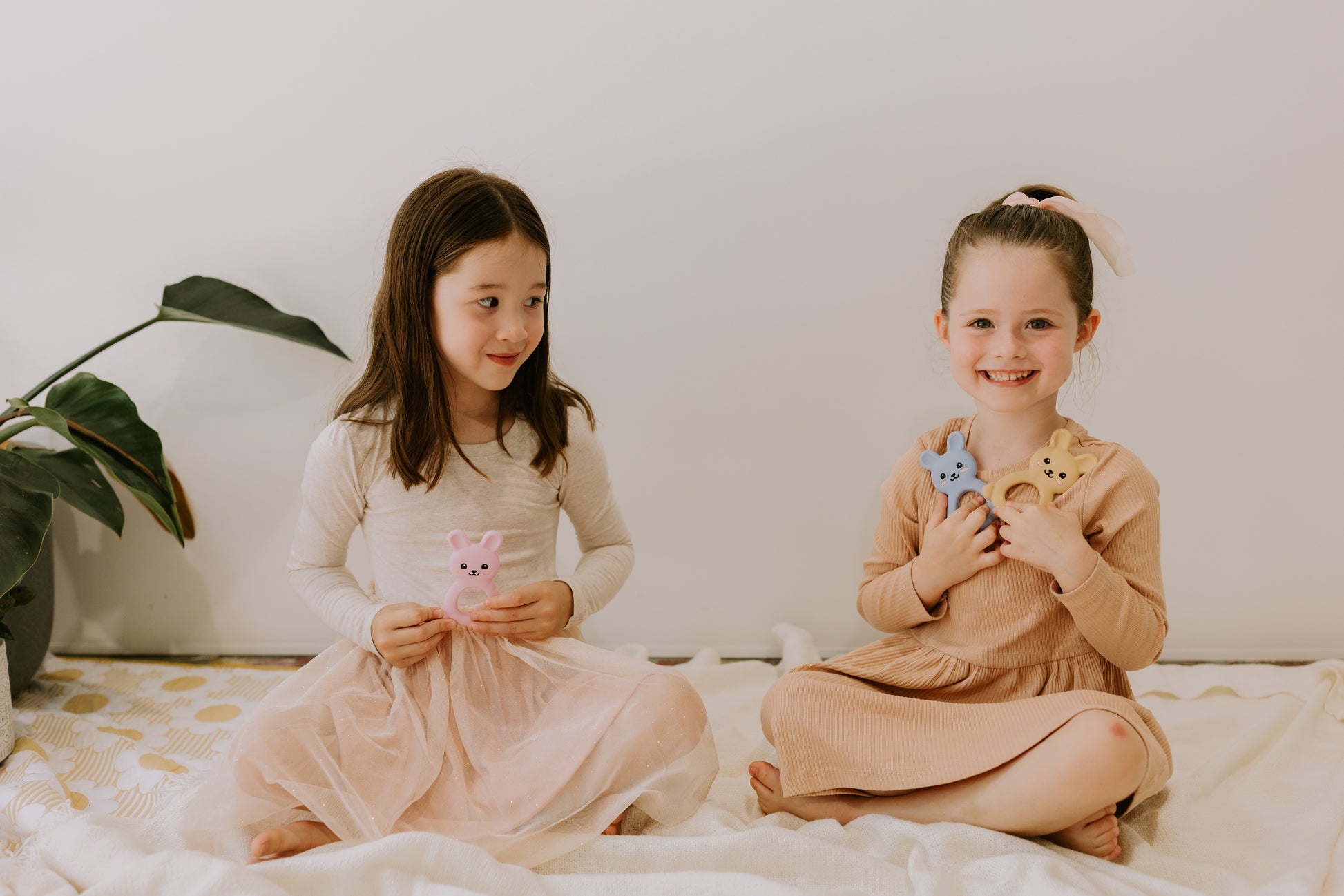 The Bunny Teether is an adorable and easy-to-hold teething accessory, perfect for tiny hands and gentle on sore gums. Its textured back is ideal for teething babies and adds an extra layer of sensory fun for little ones. Crafted from high-quality, non-toxic silicone, the Bunny Teether is BPA-free, phthalate-free, and completely safe for your baby.