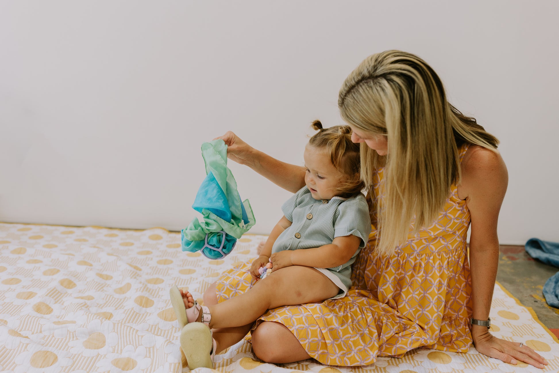 Pláneta mælir með: Notaðu skynjunarboltann með leiksilki. Skynjunarboltinn parast alvega frábærlega með leiksilkjunum okkar. Hægt er að troða leiksilki inn í boltann fyrir yngstu börnin og bjóða þeim þannig upp á tvær mismunandi áferðir til að upplifa þegar það leikur sér með boltann. Börnin hafa svo gaman af því að reyna toga leiksilkið útúr boltanum. Fyrir eldri börn er svo hægt að þræða leiksilkið um umgjörð boltans og búa þannig til þraut fyrir barnið að leysa.